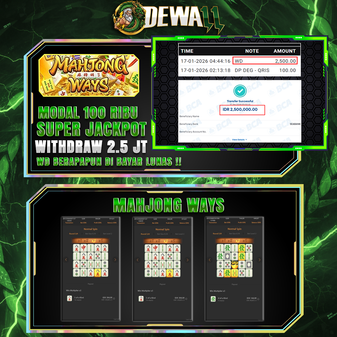Cek sendiri DEWA11 tempat game jackpot dalam waktu singkat cuma di sini depo 100k bisa withdraw 2,5 Juta Pass Sudah di kasih bukti bukan janji yakin ga main?Rugi Dong!